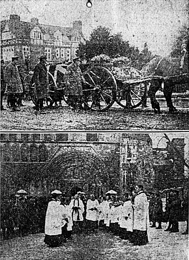 The procession to the Parish Church was marked by the strains of Chopin's Funeral March. The parents and relatives walked behind the gun carriage.