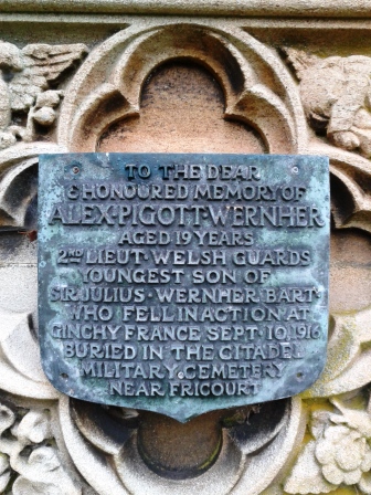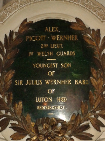It was reported in the Luton News on 21st September 1916 of the death of 2/Lieutenant Alexander Pigott Wernher, youngest son of Sir Julius & Lady Wernher.